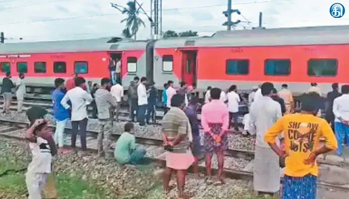 மேலும் சிலர் உடனே ரயில்வே கார்டுக்கு தகவல் தெரிவித்தனர். உடனே லோகோ பைலட்டுக்கு தகவல் கொடுக்கப்பட்ட நிலையில், நந்தலுருவில் ரயில் நிறுத்தப்பட்டது. உடனடியாக ரயிலில் இருந்து பயணிகள் அச்சமடைந்து கீழே இறங்கினர். அங்கு வந்த ரயில்வே ஊழியர்கள் புகை கிளம்பிய பெட்டியின் அடியில் ஆய்வு மேற்கொண்டனர். அதில் ரயிலின் பிரேக்குகளில் இருந்து புகை வருவது கண்டறியப்பட்டது. உடனே பழுதுபார்க்கப்பட்டு மீண்டும் ரயில் புனே நோக்கி புறப்பட்டு சென்றது.