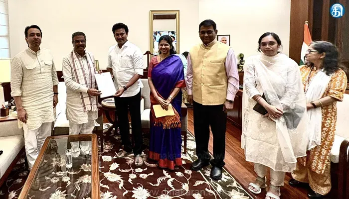 அந்த மனுவில் 2024-2025 ஆண்டுக்கான நிலுவைத் தொகை மற்றும் 2025-2026ம் ஆண்டுக்கான முதல் தவணையை வழங்க வேண்டும் என்றும் தெரிவிக்கப்பட்டுள்ளது. ஒன்றிய கல்வி அமைச்சர் தர்மேந்திரபிரதானை, தமிழக பள்ளிக்கல்வி அமைச்சர் அன்பில்மகேஷ் பொய்யாமொழி டெல்லியில் நேற்று சந்தித்தபோது, அவருடன் நாடாளுமன்ற குழுத்தலைவர் கனிமொழி, பள்ளிக்கல்வித்துறை முதன்மைச் செயலாளர் சந்திரமோகன், ஒருங்கிணைந்த பள்ளிக் கல்வி மாநில திட்ட இயக்குநர் ஆர்த்தி ஆகியோர் உடன் இருந்தனர்.