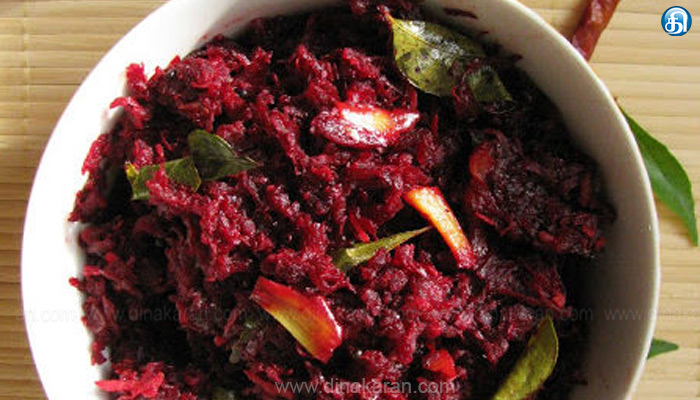 முதலில் பீட்ரூட்டை தோல் சீவி சிறு துண்டுகளாக அல்லது துருவி வைத்துக் கொள்ளவும். தேங்காய் சீரகம் இஞ்சி பச்சைமிளகாய் ஆகியவற்றை மிக்ஸியில் கரகரப்பாக அரைத்துக் கொள்ளவும்.ஒரு கடாயில் ஒரு ஸ்பூன் எண்ணை விட்டு பீட்ரூட்டை நன்கு வதக்கி சிறிதளவு தண்ணீர் தெளித்து மூடி வைத்து வேக வைக்கவும். பீட்ரூட் முக்கால் பதம் வெந்தவுடன் அரைத்து வைத்த தேங்காய் விழுதை சேர்த்து சிறிது தண்ணீர் தெளித்து பச்சை வாசனை போகும் வரை மிதமான தீயில் வதக்கவும்.இப்பொழுது பீட்ரூட் கலவை நன்கு வெந்து வந்த பிறகு அடுப்பை அனைத்து விட்டு தயிரை சேர்த்து நன்கு கலந்து கடுகு கருவேப்பிலை தாளித்து தேவையான அளவு உப்பு சேர்த்து கலந்து பரிமாற அற்புதமான பீட்ரூட் தொடுகறி ரெடி. இந்த தொடுகறி எந்தவித சாதத்திற்கும் சைடு டிஷ்ஷாக சாப்பிடுவதற்கு பொருத்தமாக இருக்கும்.