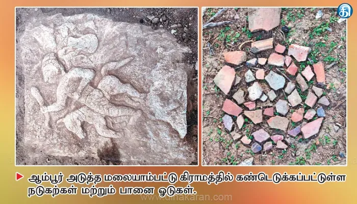 ஆம்பூர் அடுத்த மலையாம்பட்டில் 500 ஆண்டுகள் பழமையான நடுகற்கள் கண்டெடுப்பு