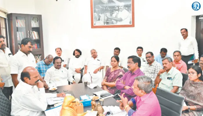 திருவண்ணாமலை : திருவண்ணாமலை மாநகராட்சியில் செயல்படுத்தப்படும் புதிய திட்டப் பணிகளின் முன்னேற்றம் குறித்த ஆய்வுக்கூட்டம் பொதுப்பணித்துறை அமைச்சர் எ.வ.வேலு தலைமையில் நடந்தது. கூட்டத்தில், சட்டப்பேரவை துணை சபாநாயகர் கு.பிச்சாண்டி, கலெக்டர் தர்ப்பகராஜ், மேயர் நிர்மலா வேல்மாறன், மாநகராட்சி ஆணையாளர் செல்வ பாலாஜி, துணை மேயர் சு.ராஜாங்கம், உதவி கலெக்டர்(பயிற்சி) அம்ருதா மற்றும் அரசு துறை அலுவலர்கள் கலந்துகொண்டனர்.