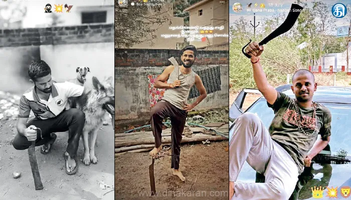 கவின் கொலை வழக்கில் கைது செய்யப்பட்டுள்ள சுர்ஜித் அரிவாள், கத்தியுடன் இருக்கும் விதவிதமான புகைப்படங்கள் சமூக வலைதளங்களில் வெளியாகி அதிர்ச்சியை ஏற்படுத்தியுள்ளது. தாய், தந்தை போலீஸ் துறையில் எஸ்ஐயாக பணியாற்றும் நிலையில், கவினை ஆணவக் கொலை செய்த வீச்சரிவாளுடன் இருக்கும் படங்களும், வெட்டரிவாள் மீது கால் வைத்திருக்கும் படங்களும், கார் மீது சாய்ந்து கொண்டு அரிவாளை தூக்கி காண்பிக்கும் படங்கள் என அரிவாளுடன் வித, விதமான போஸ்களில் சுர்ஜித் இருக்கும் படங்கள் சமூக வலைதளங்களில் வைரலாகி வருகிறது. இதில் ஒரு படம் பிப்ரவரி 14ம் தேதி பதிவிடப்பட்டுள்ளது.