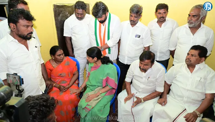 இந்த நிலையில், கவினின் வீட்டுக்கு நேரில் சென்ற திமுக பொருளாளரும் தூத்துக்குடி எம்பியுமான கனிமொழி, அவரின் பெற்றோருக்கு ஆறுதல் தெரிவித்தார். அவருடன் அமைச்சர் கே.என். நேரு சென்றிருந்தார். குற்றம் செய்த அனைவரின் மீதும் நடவடிக்கை எடுப்பதில் முதலமைச்சர் உறுதியாக இருப்பதாக கவினின் பெற்றோரிடம் கனிமொழி தெரிவித்தார். மேலும், சுர்ஜித்தின் தந்தை கைது செய்யப்பட்டுள்ள நிலையில், தாயாரையும் கைது செய்து நடவடிக்கை மேற்கொள்ள வேண்டுமென கவினின் பெற்றோர் கனிமொழியிடம் கோரிக்கை வைத்துள்ளனர்.