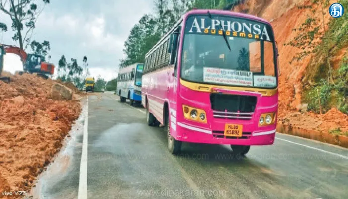 போடி: மூணாறு மலைச்சாலையில் கனமழையால் மண் சரிவு ஏற்பட்டு போக்குவரத்து பாதிக்கப்பட்ட நிலையில், நேற்று மீண்டும் போக்குவரத்து துவங்கியது. கேரள மாநிலத்தில் தென்மேற்கு பருவமழை தீவிரம் அடைந்ததால் இடுக்கி மாவட்ட பகுதிகளில் கனமழை கொட்டி வருகிறது. இதில் கடந்த 26ம் தேதி, தேவிகுளம் பகுதியில் உள்ள தாவரவியல் பூங்கா அருகில், பெரிய அளவில் நிலச்சரிவு ஏற்பட்டதால் போக்குவரத்து நிறுத்தப்பட்டது. இதையடுத்து பேருந்துகள் தேவிகுளத்திற்கு இரண்டு கிலோமீட்டர் முன்பு உள்ள சின்னக்கானல்-சூரியநெல்லி பிரிவு வரை சென்று வந்தன.