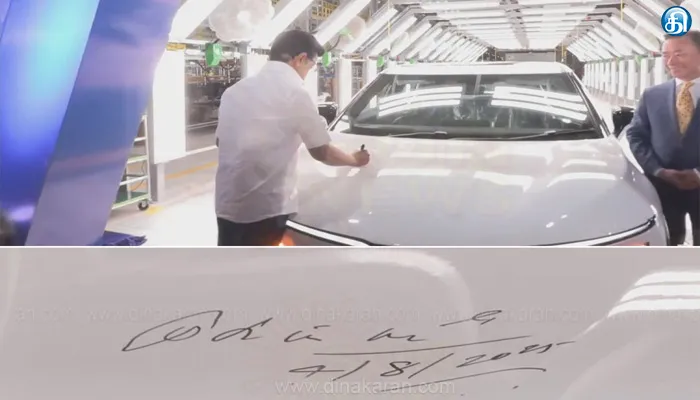 The post தூத்துக்குடி வின்ஃபாஸ்ட் ஆலையில் உற்பத்தி செய்யப்பட்ட முதல் காரில் கையெழுத்திட்டு விற்பனையை தொடங்கி வைத்தார் முதலமைச்சர் மு.க.ஸ்டாலின்..!! appeared first on Dinakaran.