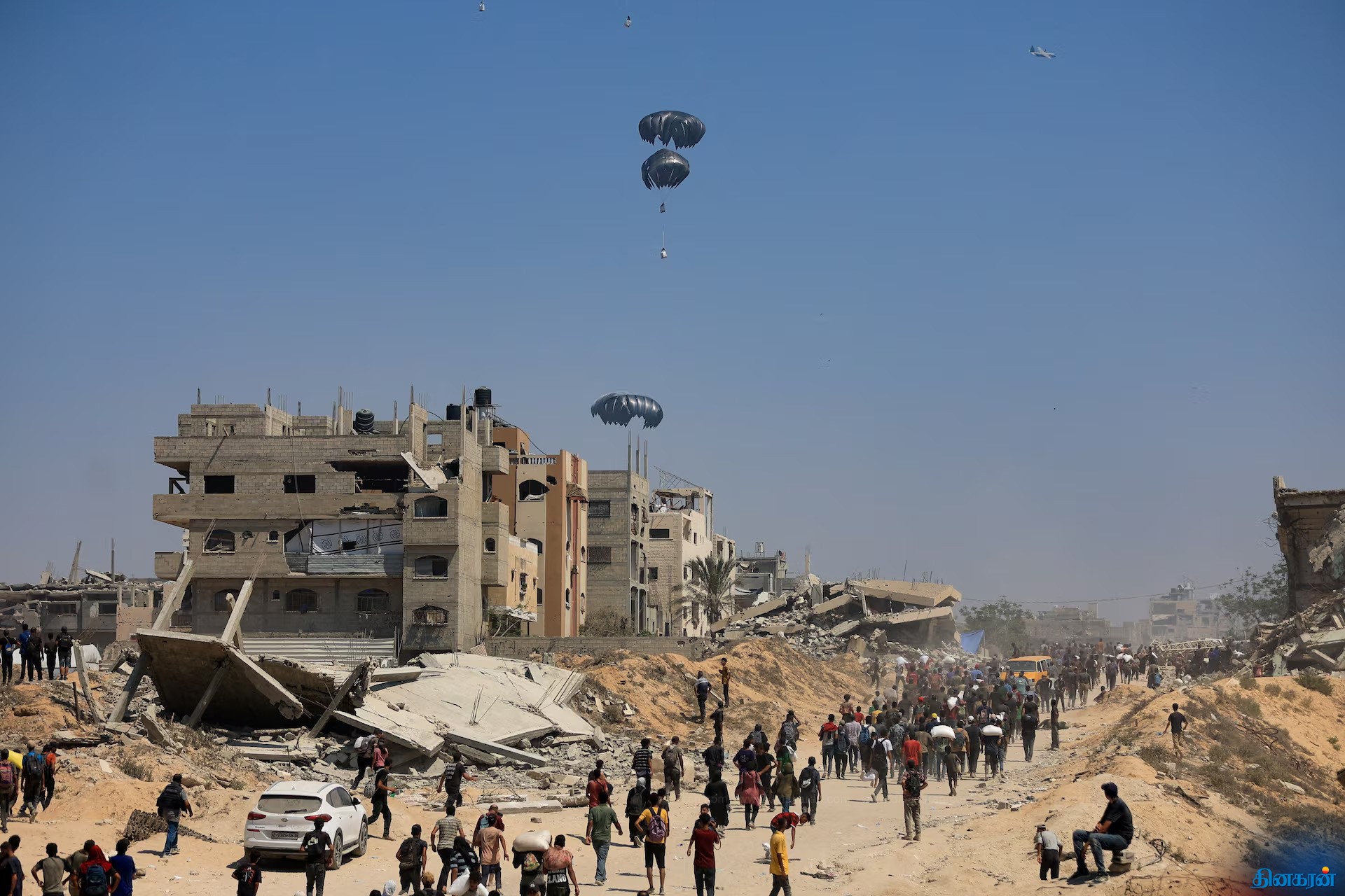 போரை விட கொடியது பசிப்பிணி.. பட்டினியால் வாடும் காசா மக்களுக்கு விமானத்தின் மூலம் உணவுப் பொருட்கள் விநியோகம்!!