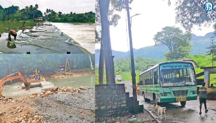 வனப்பகுதிக்குள் ஏற்கனவே இருந்த தரைப்பாலம் சேதமடைந்துவிட்டதாலும் மழைக்காலங்களில் வெள்ளம் வடிய ஒரு வார காலத்திற்கு மேல் ஆவதாலும் இங்கு உயர்மட்ட பாலம் அமைக்க ரூ.5 கோடி மதிப்பீட்டில் ஒப்பந்தம் கோரப்பட்டு வனத்துறை அனுமதியுடன் பணிகள் நடந்து வருகிறது.இந்நிலையில் மக்கள் ஆற்றை கடக்க அமைக்கப்பட்டிருந்த தற்காலிக மாற்றுப்பாலம் ஆக.21 பெய்த கனமழையினால் அடித்து செல்லப்பட்டது. எனவே பொதுமக்கள் நலன் கருதி உடனடியாக மாற்றுப்பலம் அமைக்க உத்தரவிடப்பட்டது.