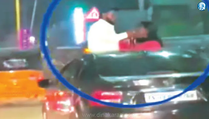 துரைப்பாக்கம்: தாம்பரம் ஜிஎஸ்டி சாலையில், சில தினங்களுக்கு முன்பு சென்று கொண்டிருந்த காரின் மேற்கூரை திறக்கப்பட்டு, அதில், ஒரு காதல் ஜோடி நின்று கொண்டு, மது அருந்திக் கொண்டு ஜாலியாக சென்றது. இதில் சிலர் செல்போனில் வீடியோ எடுத்து சமூக வலைதளங்களில் பதவிட்டனர்.