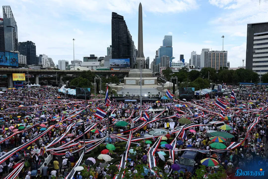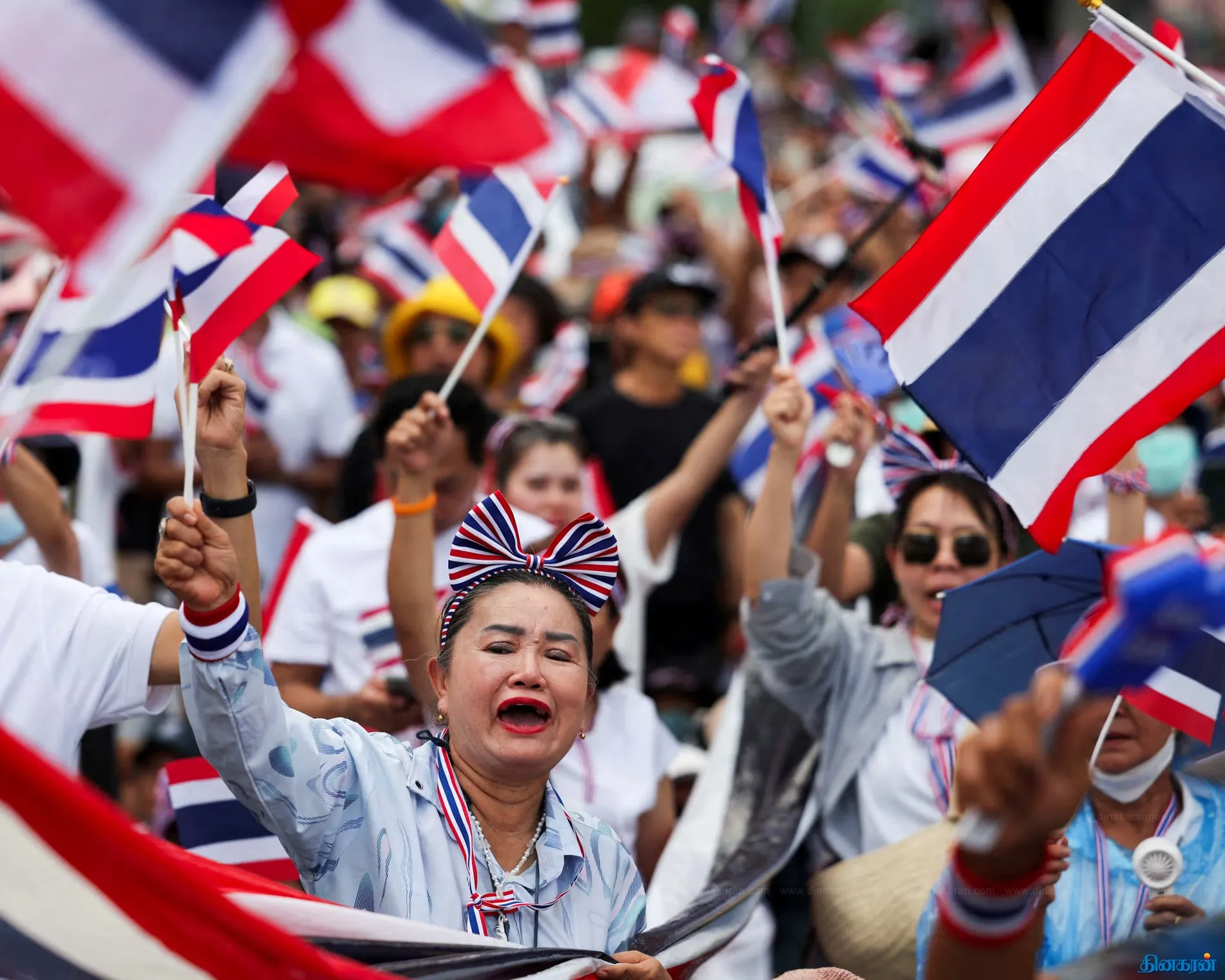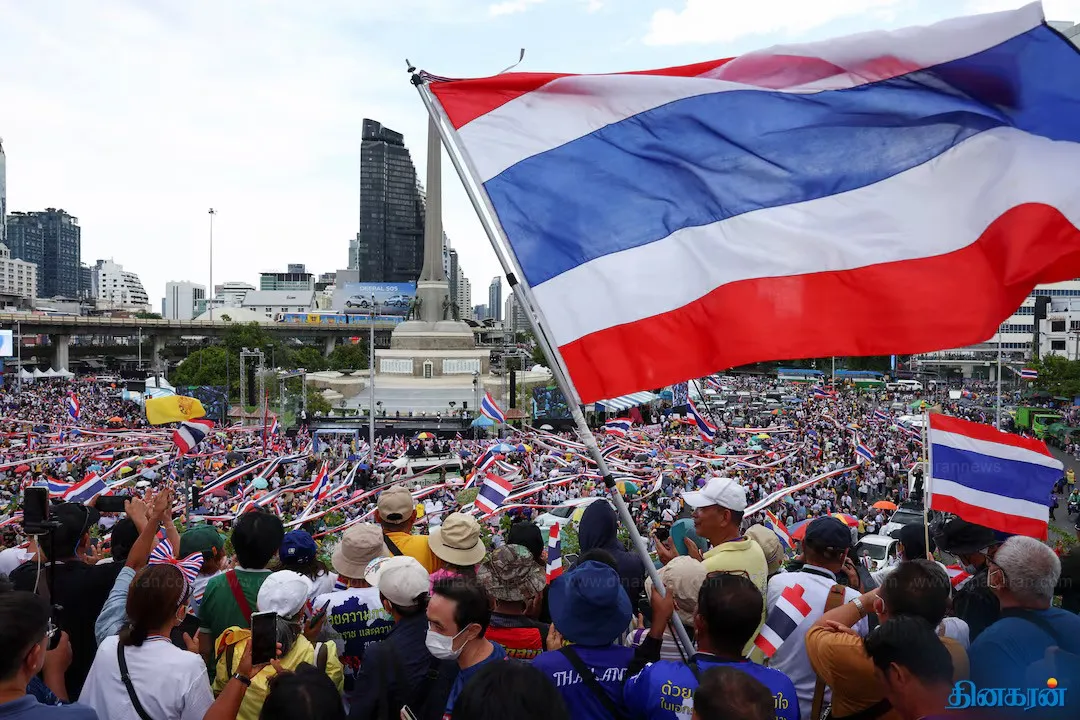 தாய்லாந்து பிரதமர் பதவி விலகக் கோரி பாங்காக்கில் ஆயிரக்கணக்கானோர் ஆர்ப்பாட்டம்!!