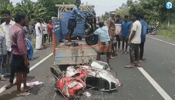 The post தஞ்சாவூரில் பைக்கும், ஸ்கூட்டியும் நேருக்கு நேர் மோதியதில் 3 பேர் உயிரிழப்பு appeared first on Dinakaran.