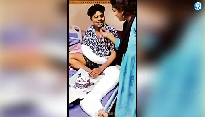 சூர்யாவை கைது செய்த போலீசார் அவரை சிகிச்சைக்காக கடலூர் அரசு மருத்துவமனையில் அனுமதித்தனர். அங்கு எலும்பு முறிவு பிரிவில் அவருக்கு சிகிச்சை அளிக்கப்பட்டு வருகிறது. மேலும் அந்த வார்டில் அவருக்கு போலீஸ் பாதுகாப்பும் போடப்பட்டுள்ளது. இந்நிலையில் சிகிச்சை பெற்று வரும் சூர்யாவுக்கு கடந்த 1ம் தேதி பிறந்தநாள் என்பதால் அன்று இரவு அவரது மனைவி பிரீத்தி கேக்குடன் அவரை பார்க்க வந்துள்ளார். மேலும் சூர்யா சிகிச்சை பெற்று வரும் படுக்கையிலேயே கேக் வெட்டி இருவரும் பிறந்தநாளை கொண்டாடியுள்ளனர். சூர்யாவின் மனைவி பிரீத்தி சூர்யாவுக்கு கேக் ஊட்டியுள்ளார். இந்த காட்சிகளை பிரீத்தி தனது இன்ஸ்டா பக்கத்தில் வெளியிட்டார். இது சமூக வலைதளங்களில் வைரலாக பரவியது.