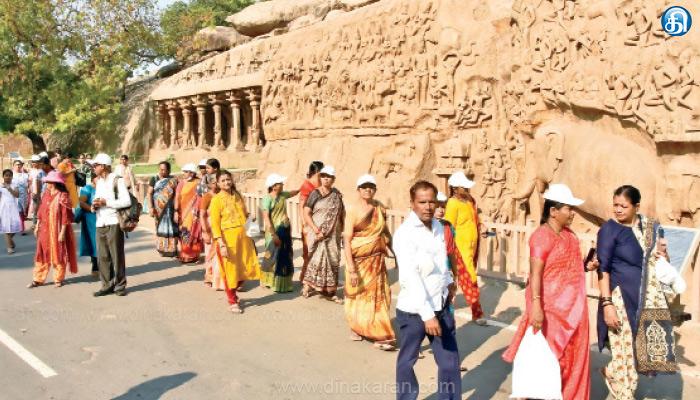 இந்த தினத்தில், சுற்றுலா பயணிகள், பொதுமக்களிடையே தங்களது சமூக கலாச்சார பாரம்பரியம் குறித்து விழிப்புணர்வு ஏற்படுத்தும் நோக்கில் கொண்டாடப்பட்டு வருகிறது. மேலும், பாரம்பரிய பெருமை கொண்ட இடங்களை பாதுகாக்கவும் அவற்றின் மீது அக்கறை கொள்ளவும் தூண்டுகிறது.இதையொட்டி, நேற்று சுற்றுலா பயணிகள் புராதன சின்னங்களை இலவசமாக சுற்றி பார்க்கலாம் என ஒன்றிய தொல்லியல் துறை அதிகாரிகள் தெரிவித்தனர். அதன்படி, மாமல்லபுரத்தில் உள்ள புராதான சின்னங்களை சுற்றி பார்க்க நேற்று குறைந்தளவு பயணிகளே குவிந்தனர். காலை 6 மணி முதலே இயற்கை காற்றை சுவாசித்தபடி புராதன சின்னங்களை பார்த்து ரசித்தனர்.